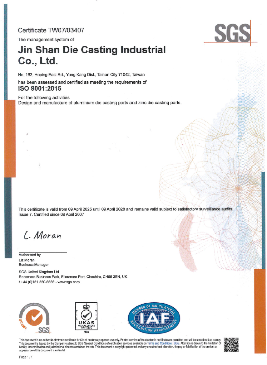 Jin Shan ISO Cert-9001 2015